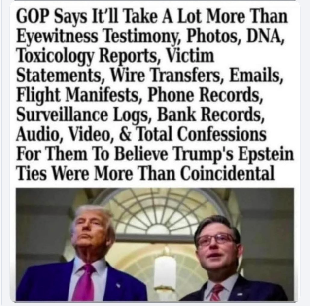 What is playing out is the typical and expected playbook of the leftist lunatics. While busy lately with the cause-du-jour, (Mpls), whenever sanity returns and those efforts lose steam or fail completely, they return to the safe and comfy confines of the Epstein files, until the next manufactured outrage is released.